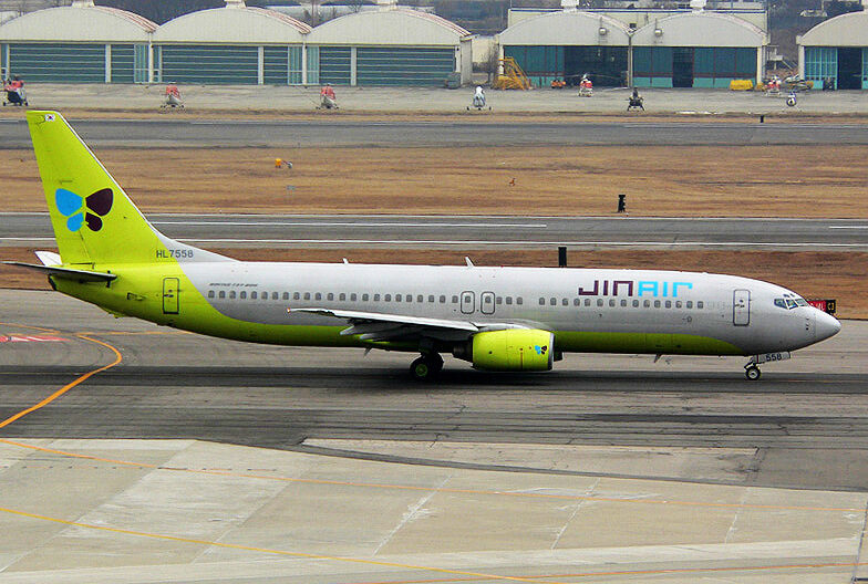 Source: https://commons.wikimedia.org/wiki/File:Jin_Air_JNA_Boeing_737-800_HL7558_at_Incheon_International_Airport_20090121.jpg /